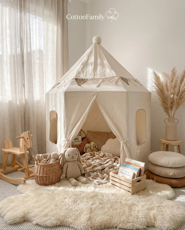 The Cozy Play Tent is constructed with child-safe, durable materials chosen for stability and non-toxicity. This careful selection provides a secure and healthy environment, allowing your child to play and rest safely, giving you complete peace of mind, a paramount logical benefit.